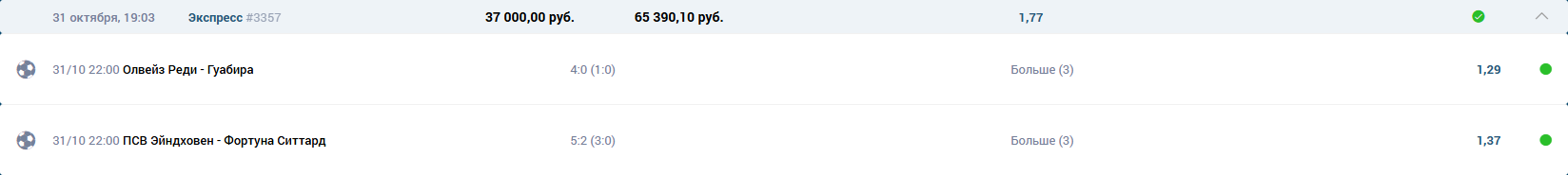 Футбол Чемпионат Нидерландов \ ПСВ Эйндховен - Фортуна Ситтард ТБ 3