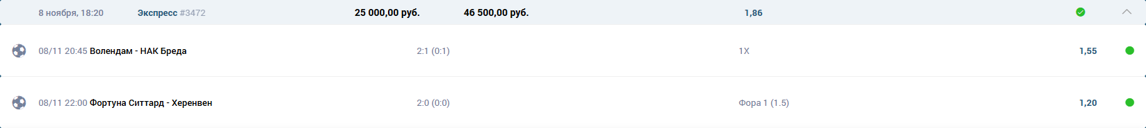 Футбол Чемпионат Нидерландов \ Фортуна Ситтард - Херенвен ф1(+1.5)