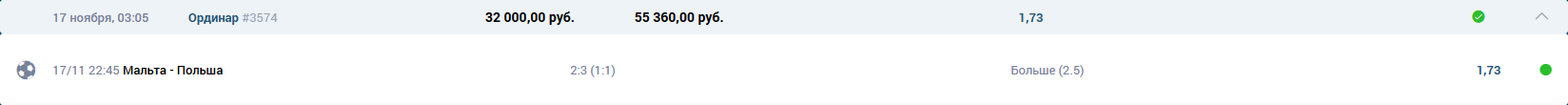 Футбол Чемпионат Мира 2026 Отборочные \ Мальта - Польша ТБ 2.5